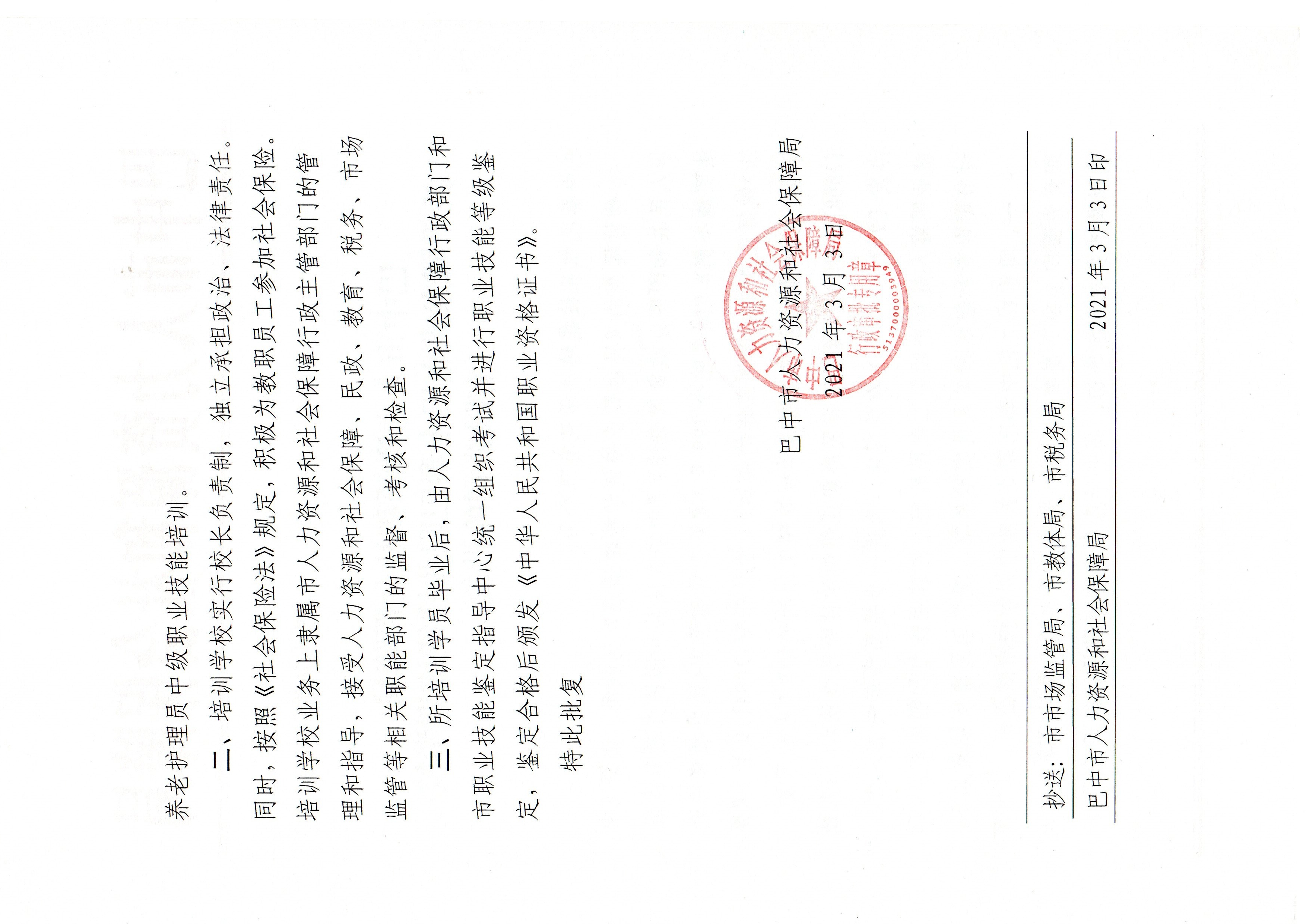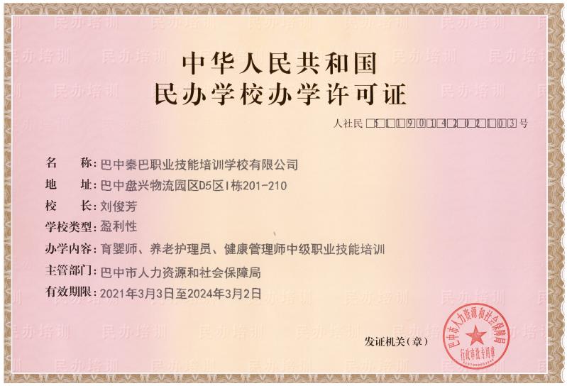 我公司成立于2021年3月3日,是經(jīng)巴中市人力資源和社會(huì)保障局批準(zhǔn)、巴中市巴州區(qū)市場(chǎng)監(jiān)督管理局登記注冊(cè)并頒發(fā)營(yíng)業(yè)執(zhí)照的職業(yè)技能培訓(xùn)機(jī)構(gòu)。經(jīng)四川西部人力資源開(kāi)發(fā)中心授權(quán)、巴中市人力資源和社會(huì)保障局批準(zhǔn)備案,是“國(guó)家職業(yè)技能等級(jí)認(rèn)定四川西部人力資源開(kāi)發(fā)中心直屬考評(píng)站”, 是巴中市唯一從事職業(yè)技能培訓(xùn)及鑒定、創(chuàng)業(yè)培訓(xùn)與服務(wù)、技能等級(jí)評(píng)價(jià)的培訓(xùn)機(jī)構(gòu)。